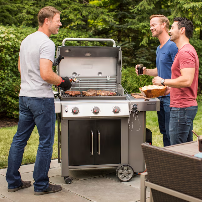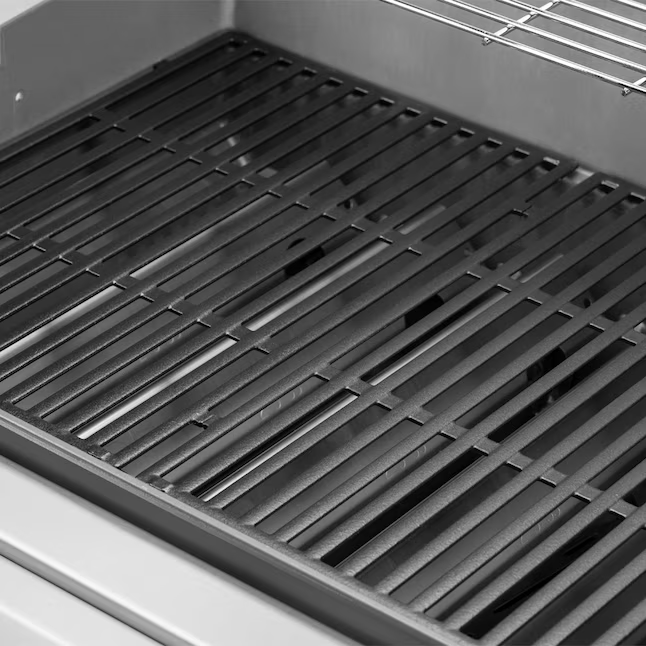 • Porcelain-enameled, cast-iron cooking grates provide even heat distribution across the entire grilling surface and superior heat retention