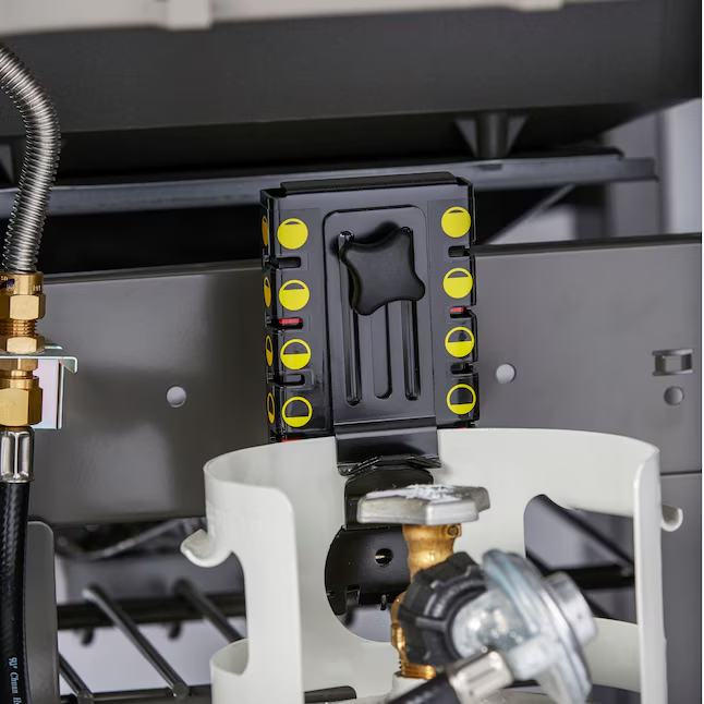 • Mounting the gas tank to the outside of the grill makes it easier to access and remove